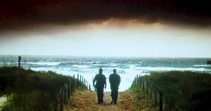 車と金を盗み、間抜けなギャングと警察をかわしながら海へと旅するふたりの様子は、コミカルなタッチで描かれています。不良気質で思い切りがいいマーティンと、温厚で小市民的なルディの掛け合いも、みていてくすっと笑えるほどです。ふたりのすぐそばに「死」があるのにも関わらず、物語が軽快で爽やかなのは、互いにその運命を受け入れ切っているからでしょう。ラストシーン、海へと続く一本の道は、海岸線の向こうにある天国にすら続いているように感じました。ふたりの人生の最後でひときわ輝くの海への旅路は、言葉にするのが勿体ないほどに、圧倒的なエンディングを迎えます。