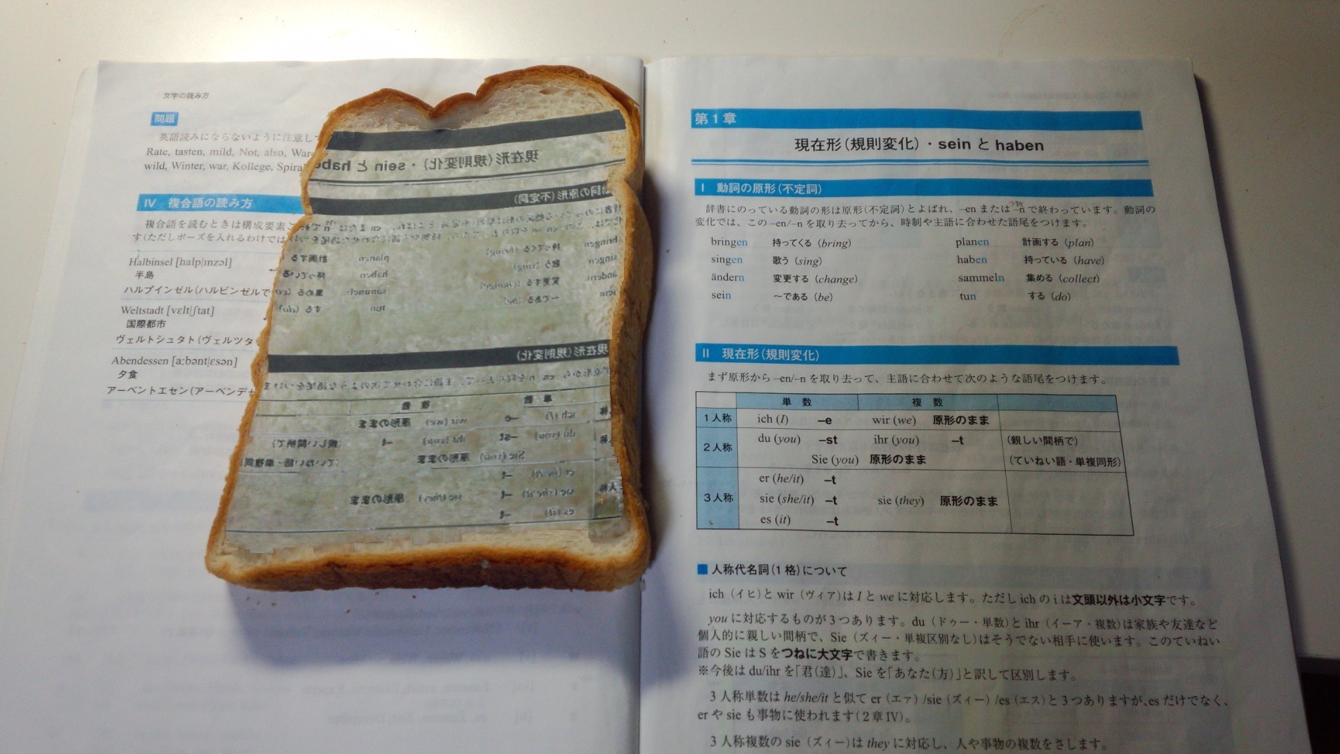 モグモグ――夜食じゃないですよ。ドイツ語の勉強です!――ゴックン。ふう、なんとか間に合いました。徹夜回避!これでぐっすり眠れます。